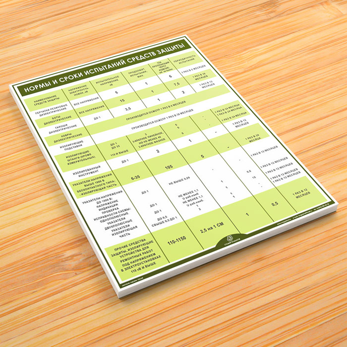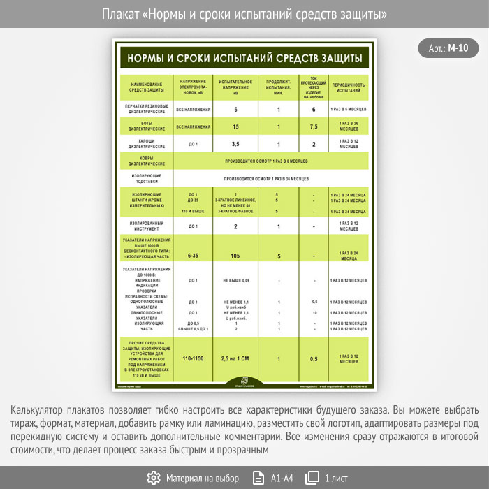 Плакат «Нормы и сроки испытаний средств защиты» (М-10, 1 лист)