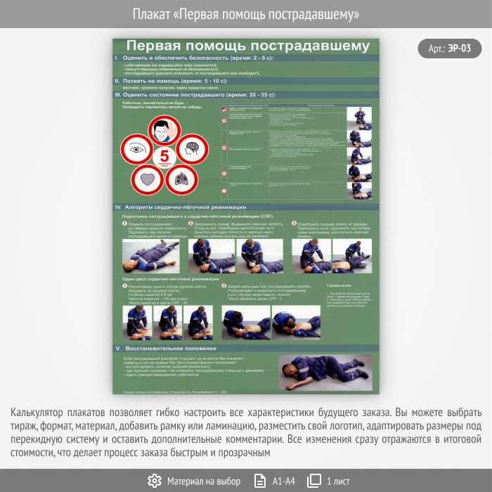 Плакат «Первая помощь пострадавшему» (ЭР-03, бумага, А1, 1 лист)
