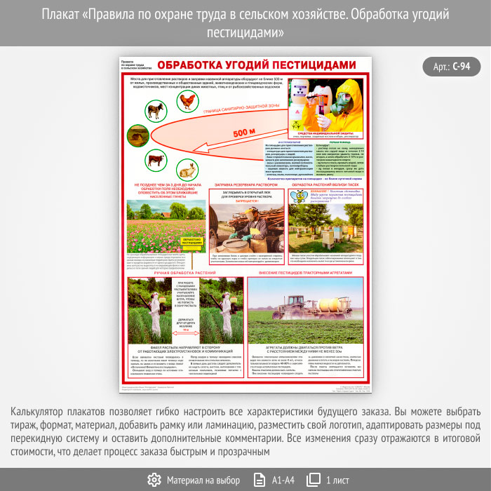 Плакат «Правила по охране труда в сельском хозяйстве. Обработка угодий пестицидами» (С-94, 1 лист)