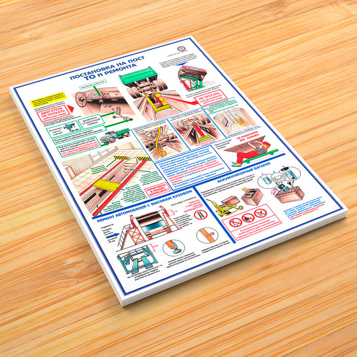 - Плакат «Постановка на пост ТО и ремонта» – правила постановки, ремонт автомобиля с высоким кузовом, аккумуляторные батареи