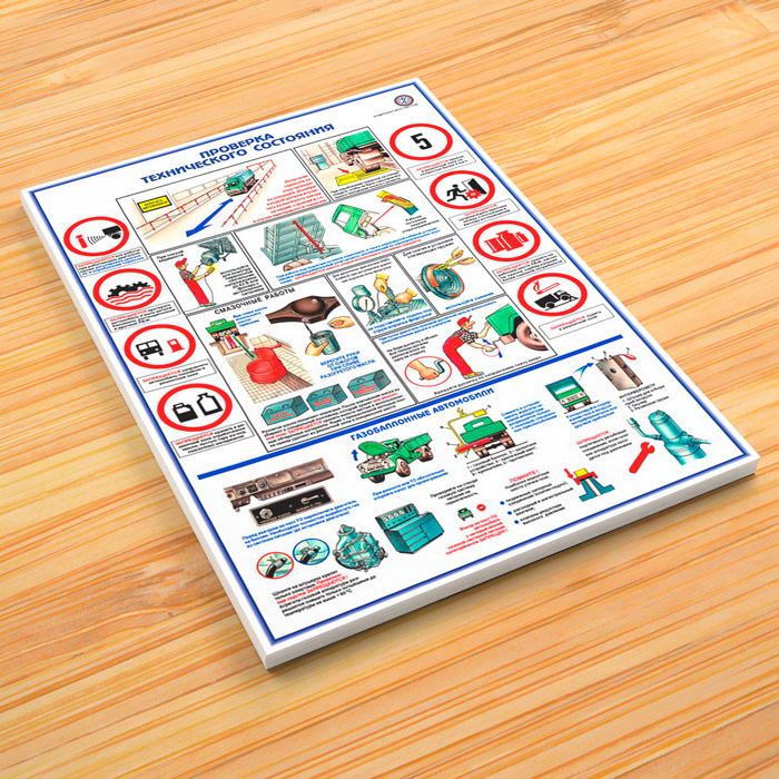 - Плакат «Проверка технического состояния» – правила безопасности, газобаллонные автомобили