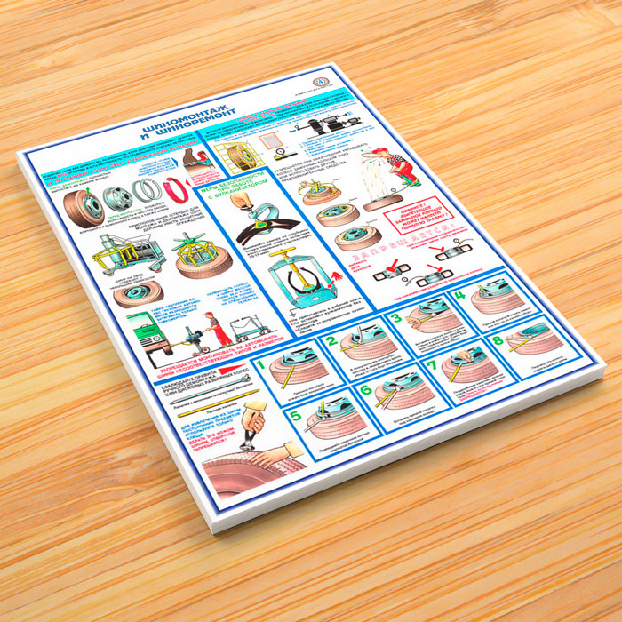 - Плакат «Шиномонтаж и шиноремонт» – меры безопасности и порядок выполнения работ