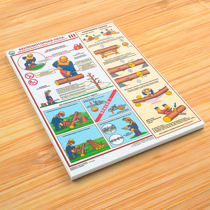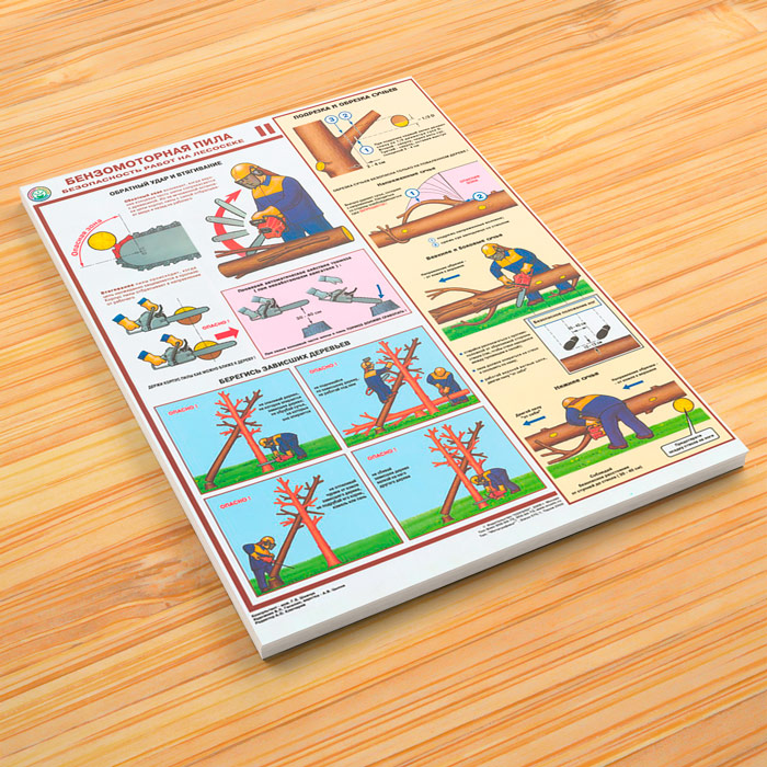 Комплект плакатов «Бензомоторная пила. Безопасность работ на лесосеке» из 3 листов – достойное качество и полезная информация по приемлемой цене