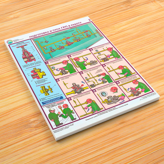 - Плакат «Подготовка и пуск ГРП в работу» – подготовка оборудования и порядок запуска ГРП