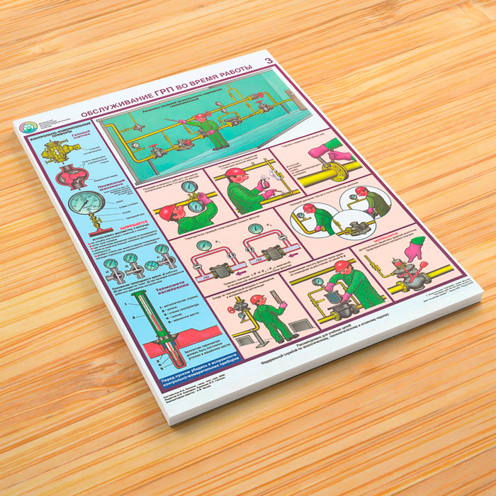 - Плакат «Обслуживание ГРП во время работы» – контрольные приборы и безопасность работ