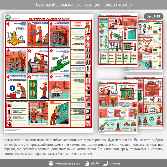 Комплект плакатов «Безопасная эксплуатация паровых котлов» из 5 листов – достойное качество и полезная информация по приемлемой цене