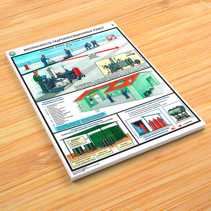 Комплект плакатов «Безопасность гидроизоляционных работ» из 3 листов – достойное качество и полезная информация по приемлемой цене