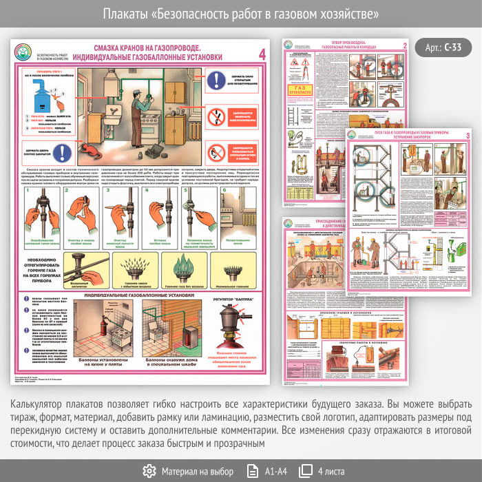 Комплект плакатов «Безопасность работ в газовом хозяйстве» из 4 листов – достойное качество и полезная информация по приемлемой цене