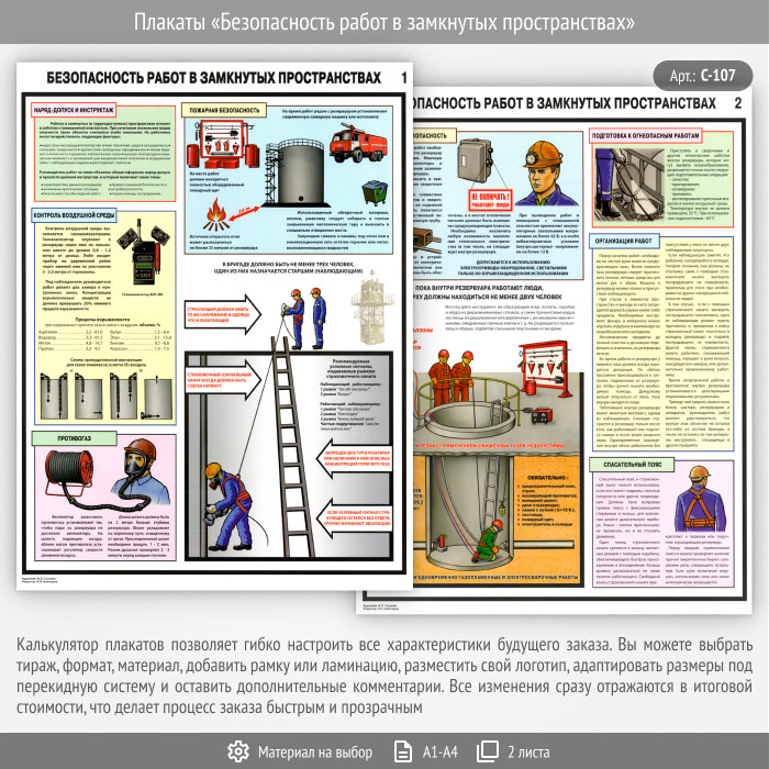 Плакаты «Безопасность работ в замкнутых пространствах» (С-107, ламинир. бумага, А2, 2 листа)