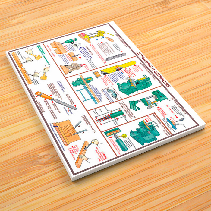 - Плакат «Долбление и сверление» – безопасность работы с электродолбежником, электродрелью, цепнодолбежным станком, сверлильным станком, сверлильно-пазовым станком, техника безопасности при работе с ручным инструментом