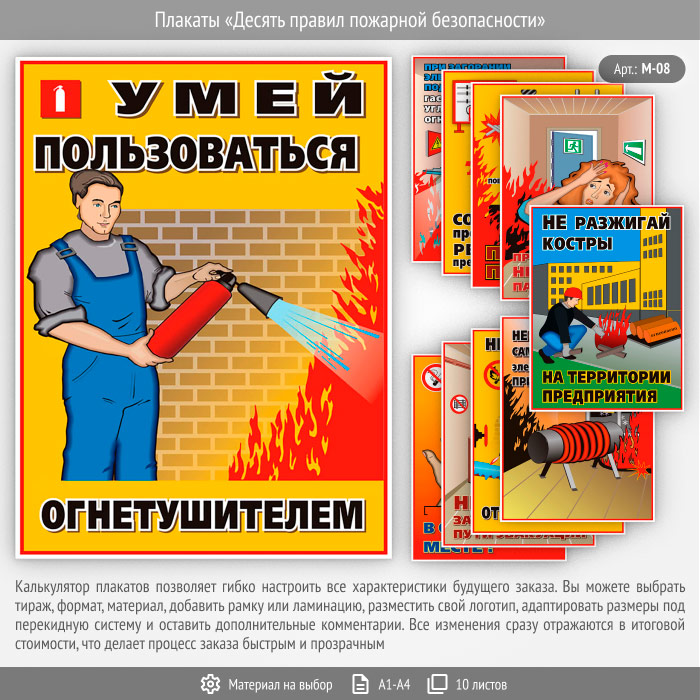 Плакаты «Десять правил пожарной безопасности» (М-08, 10 листов)