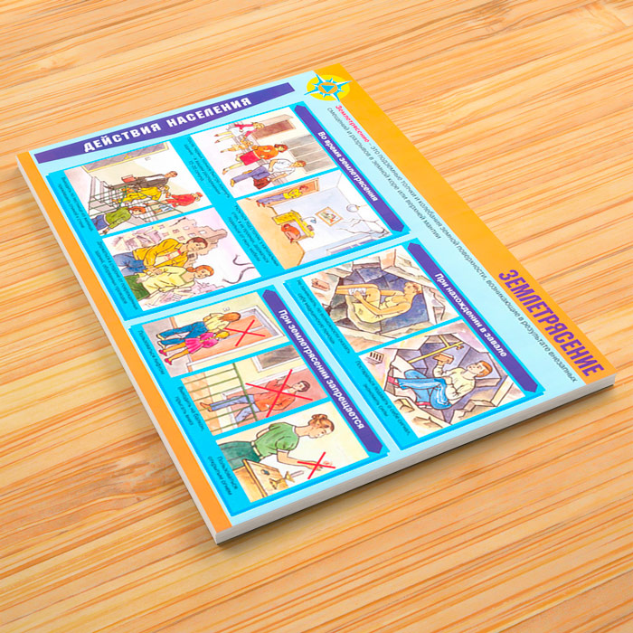 - Плакат «Землетрясение» – действия во время землетрясения, при нахождении в завале, что запрещается делать