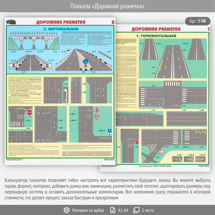 Комплект плакатов «Дорожная разметка» из 2 листов – достойное качество и полезная информация по приемлемой цене