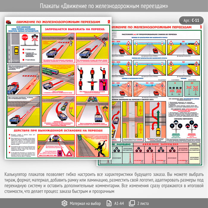 Комплект плакатов «Движение по железнодорожным переездам» из 2 листов – достойное качество и полезная информация по приемлемой цене