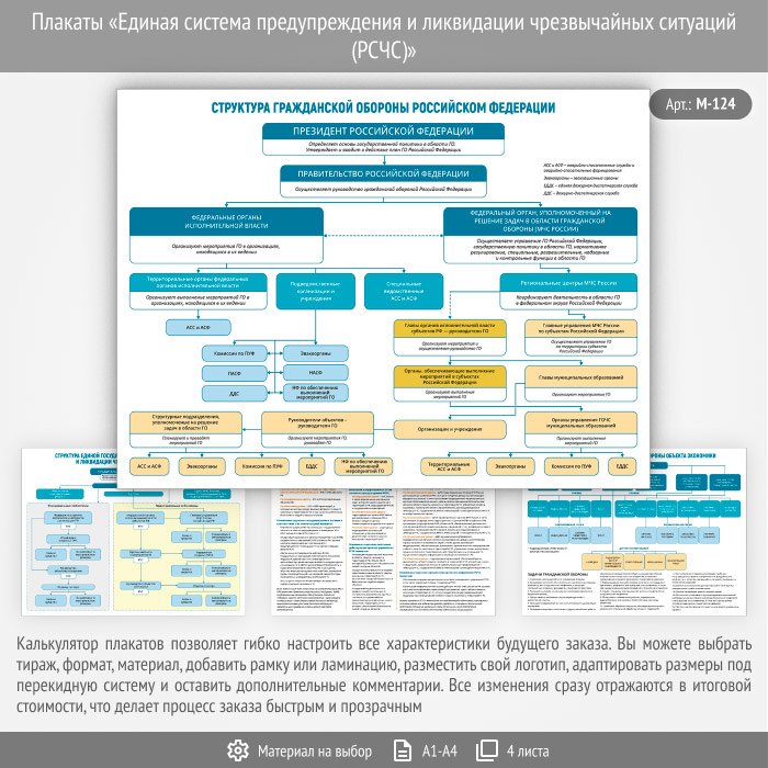 Плакаты «Единая система предупреждения и ликвидации чрезвычайных ситуаций (РСЧС)» (М-124, 4 листа)