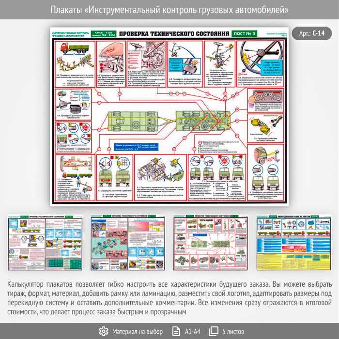 Плакаты «Инструментальный контроль грузовых автомобилей» (С-14, 5 листов)