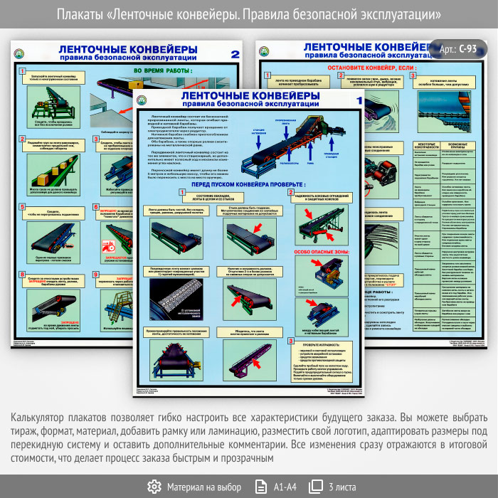 Плакаты «Ленточные конвейеры. Правила безопасной эксплуатации» (С-93, 3 листа)