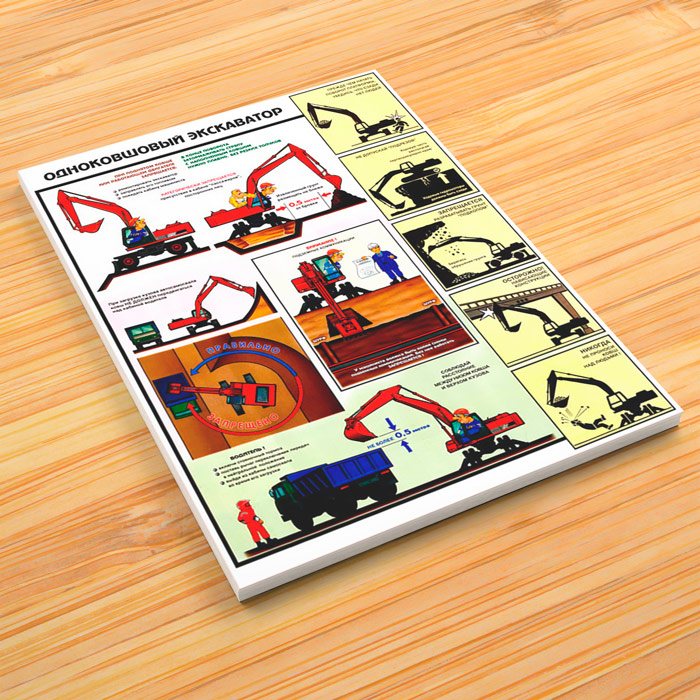 Комплект плакатов «Одноковшовый экскаватор. Безопасность земляных работ» из 4 листов – достойное качество и полезная информация по приемлемой цене