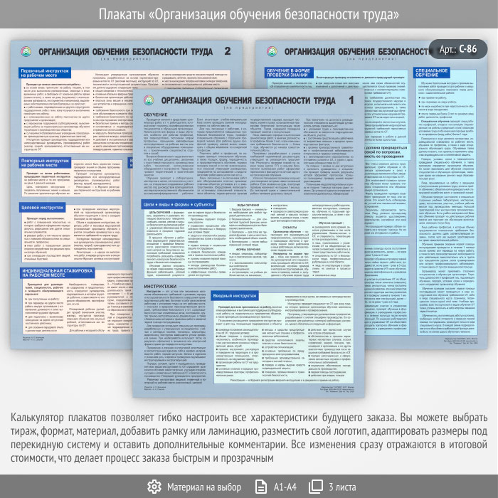 Плакаты «Организация обучения безопасности труда» (С-86, 3 листа)