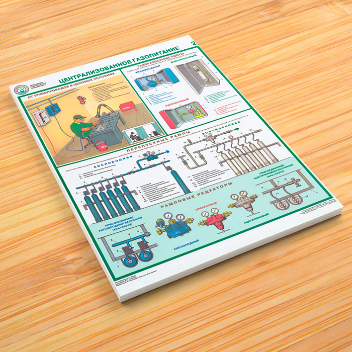 - Плакат «Централизованное газопитание» – устройство газоразборных постов, перепускных рамп, рамповых редукторов
