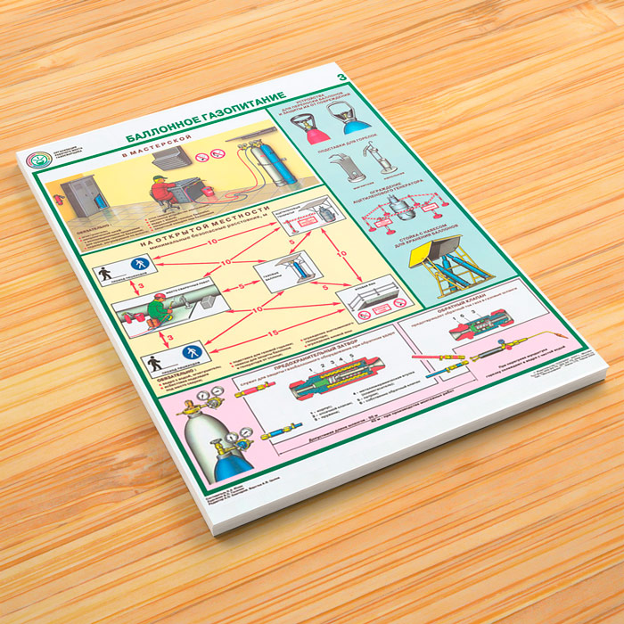 - Плакат «Баллонное газопитание» – безопасность в мастерской, на открытой местности, устройства защиты и ограждения