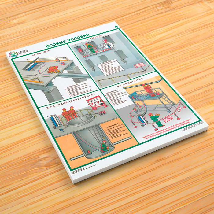 - Плакат «Особые условия» – требования безопасности при работе на высоте, в люльке, колодце и на подмостях