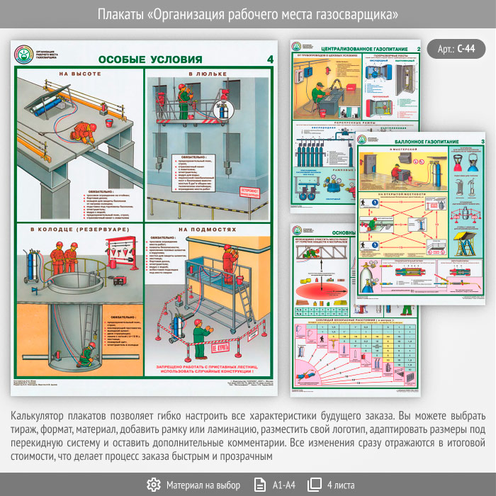 Плакаты «Организация рабочего места газосварщика» (С-44, 4 листа)