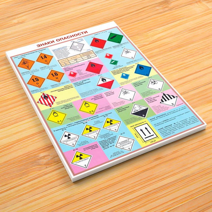 - Плакат «Знаки опасности» – виды маркировки опасных грузов и классы опасности