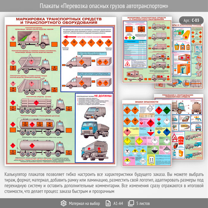 Плакаты «Перевозка опасных грузов автотранспортом» (С-03, 5 листов)