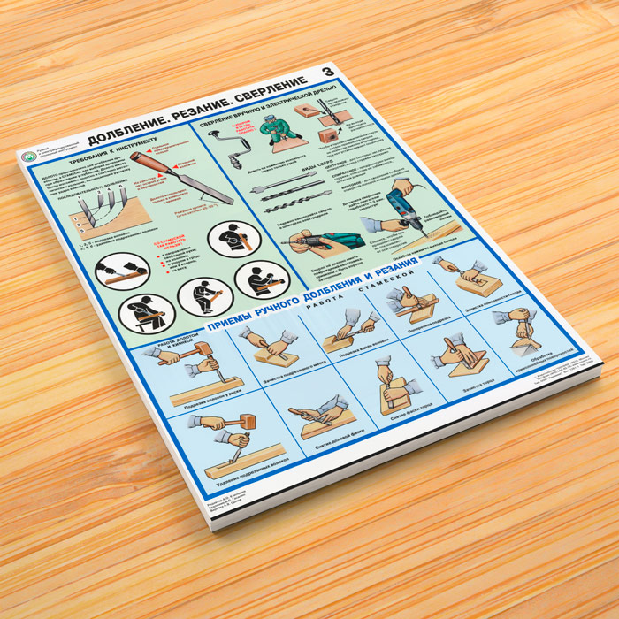 Комплект плакатов «Ручной и электрифицированный столярный инструмент» из 3 листов содержит информацию о видах ручного и электрифицированного столярного инструмента, требованиях к нему, а также безопасных приемах выполнения работ