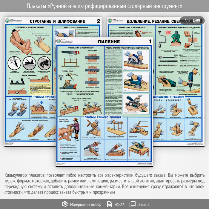 Плакаты «Ручной и электрифицированный столярный инструмент» (С-99, 3 листа)