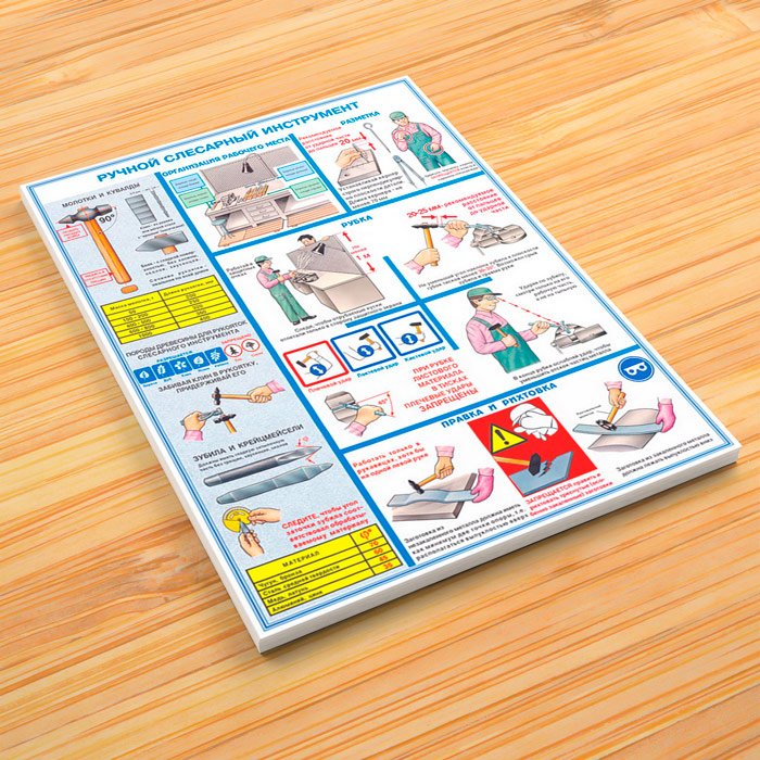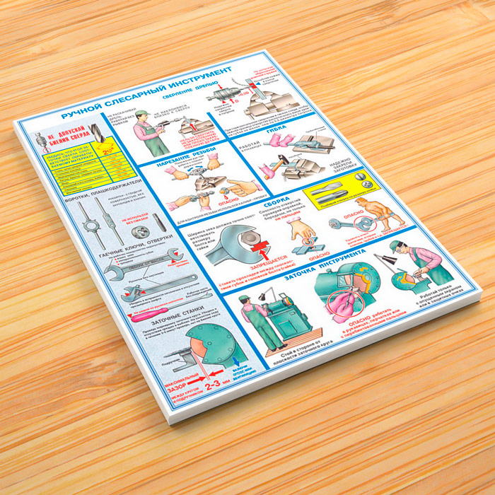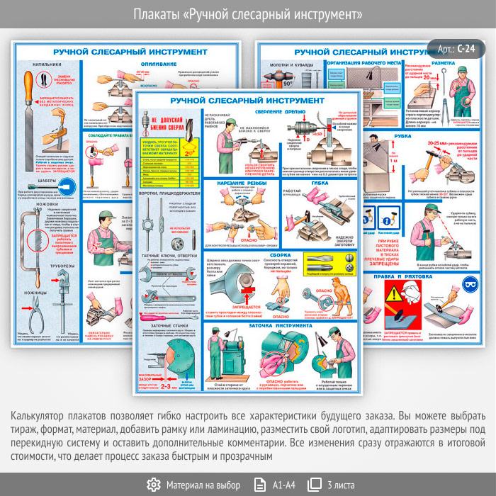 Комплект плакатов «Ручной слесарный инструмент» из 3 листов яркое и привлекающее к себе внимание напоминание о необходимости соблюдения правил безопасности