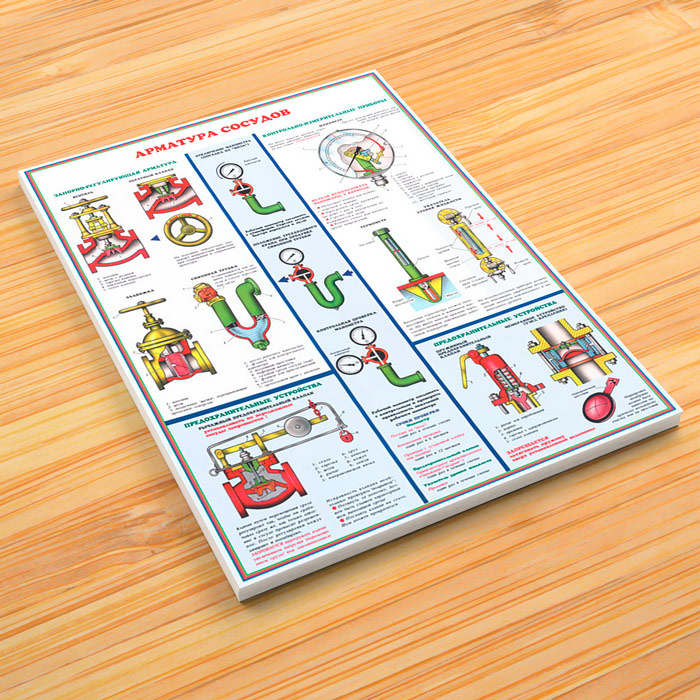 - Плакат «Арматура сосудов» – запорно-регулирующая арматура, контрольно-измерительные приборы, предохранительные устройства, манометры