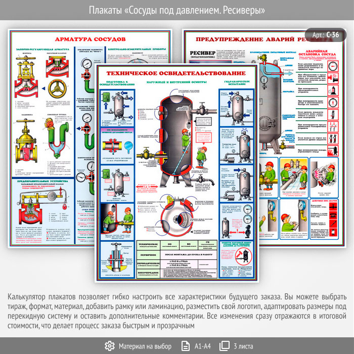 Комплект плакатов «Сосуды под давлением. Ресиверы» из 3 листов – достойное качество и полезная информация по приемлемой цене