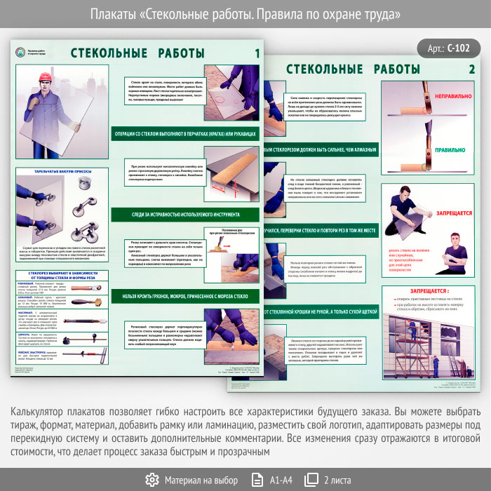 Плакаты «Стекольные работы. Правила по охране труда» (С-102, 2 листа)