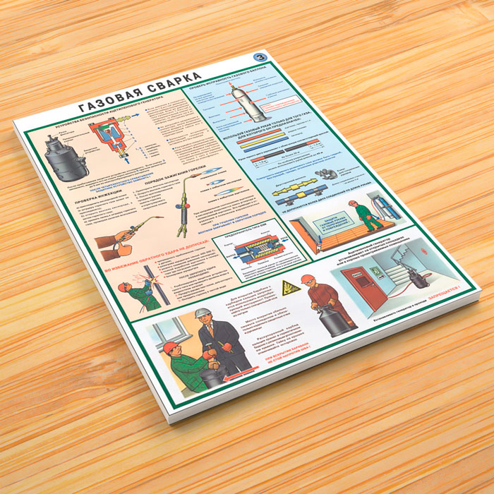 - Плакат «Газовая сварка» – устройства безопасности генератора, исправность газового баллона, техника безопасности