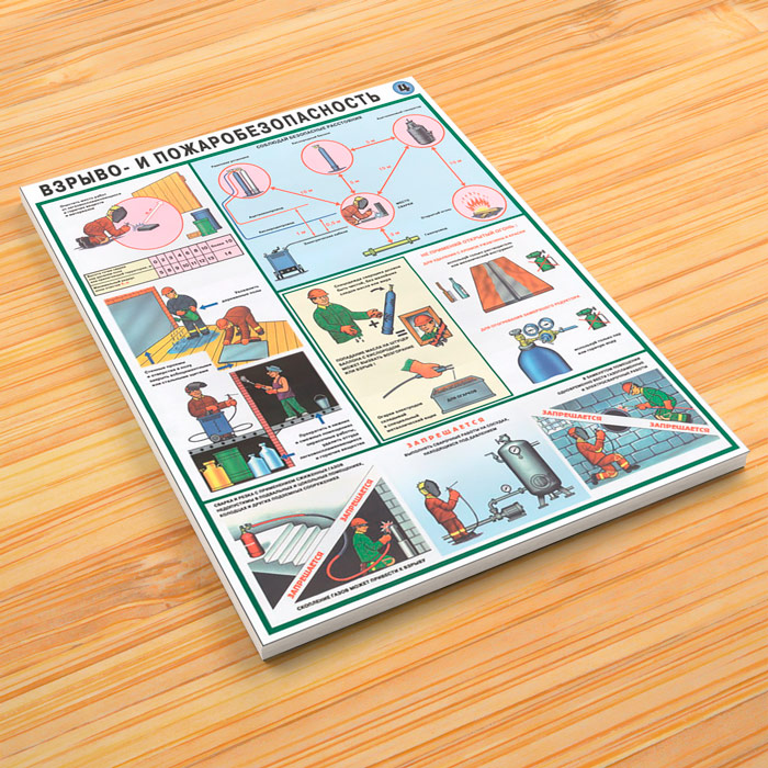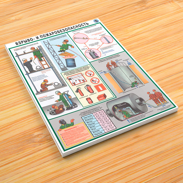- Два плаката по взрыво- и пожаробезопасности – организация рабочего места, соблюдение расстояний, работа с бензорезом, безопасность работ в труднодоступных и замкнутых местах, к чему приводит нарушение техники безопасности