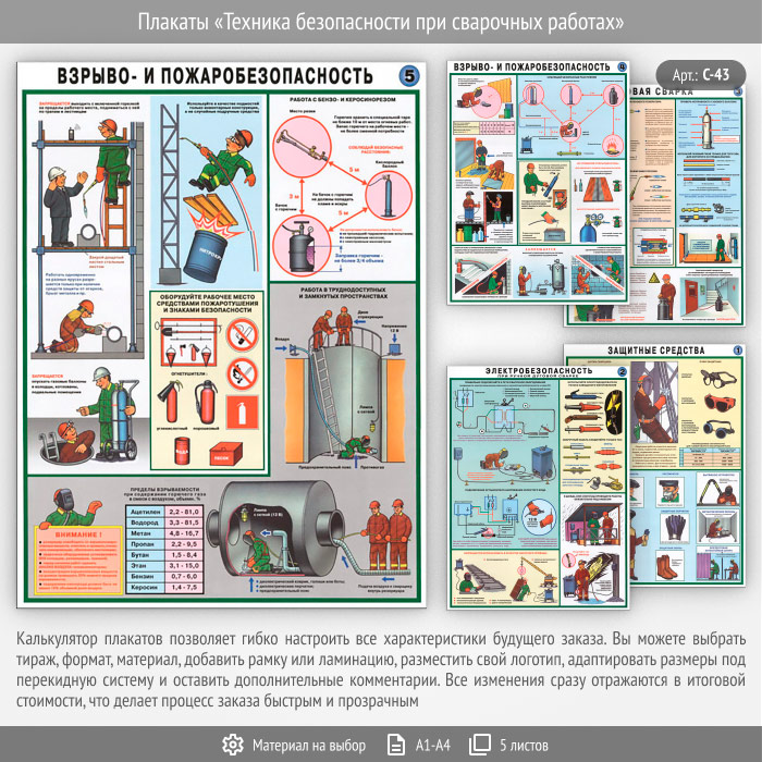 Плакаты «Техника безопасности при сварочных работах» (С-43, 5 листов)