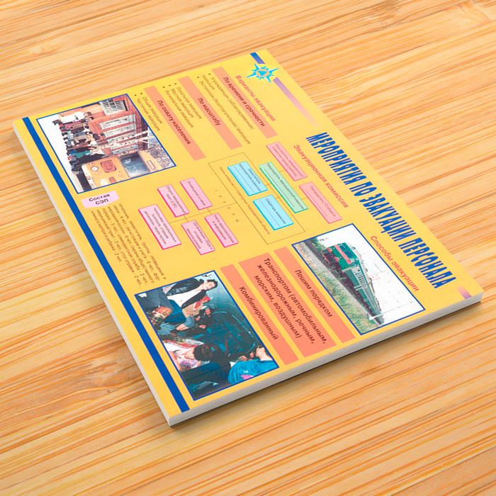 - Плакат «Мероприятия по эвакуации персонала» – Варианты эвакуации, способы эвакуации, эвакуационная комиссия