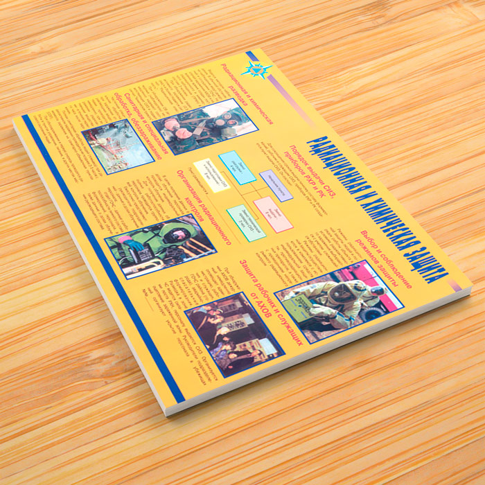 - Плакат «Радиационная и химическая защита» – порядок выдачи СИЗ и приборов, выбор и соблюдение средств защиты, санитарная обработка, организация радиационного контроля, защита рабочих и служащих от АХОВ
