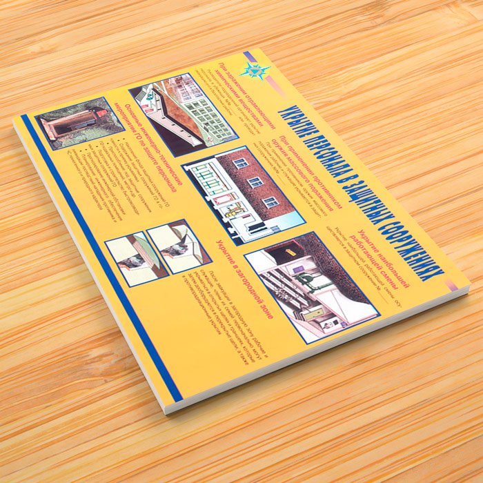 - Плакат «Укрытие персонала в защитных сооружениях» – при заражении отравляющими химическими веществами, при применении оружия массового поражения, основные мероприятия ГО по защите персонала