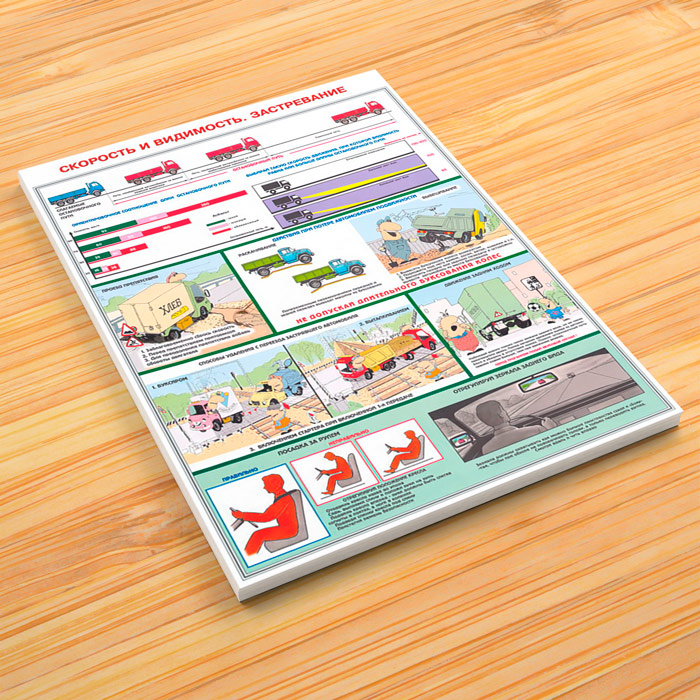 - Плакат «Скорость и видимость, застревание» – остановочный путь, объезд препятствия, потеря подвижности, движение задним ходом, посадка и зеркала заднего вида