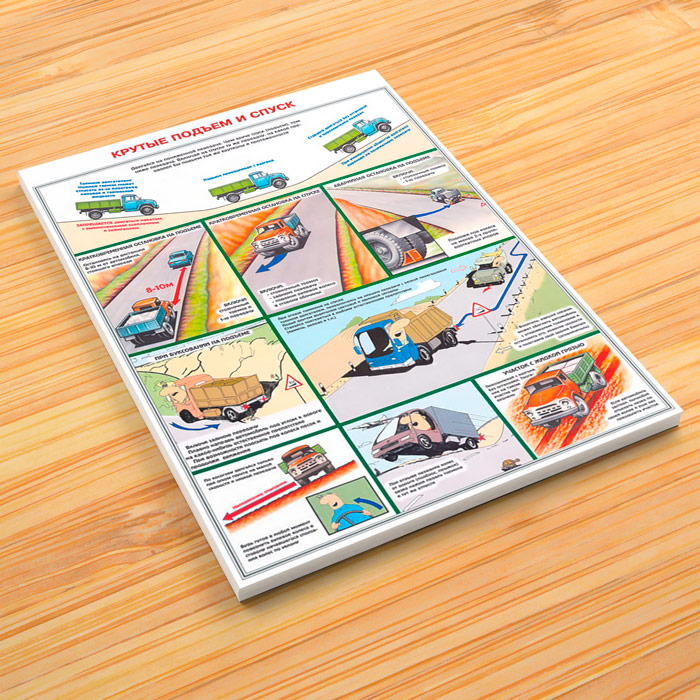 - Плакат «Крутые подъем и спуск» – правила движения и остановка, буксирование, участки с жидкой грязью