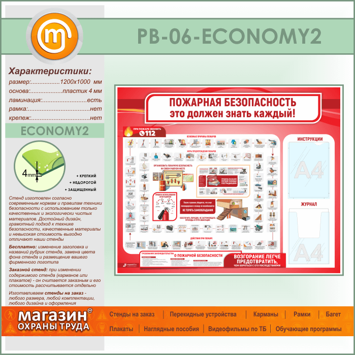 Стенд «Пожарная безопасность. Это должен знать каждый» с плоским и объемным карманами (PB-06-ECONOMY2)