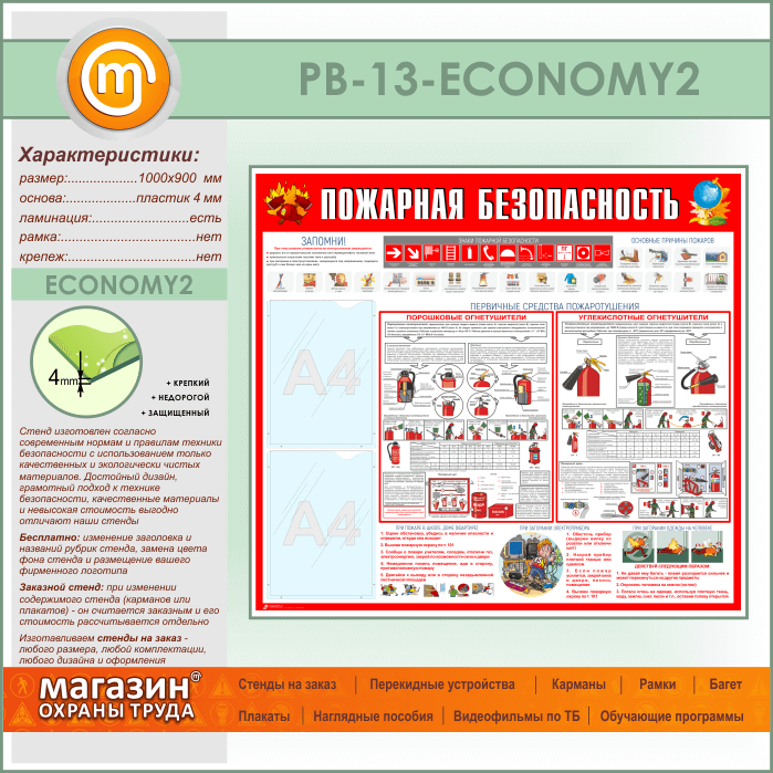 Стенд «Пожарная безопасность» с 2 карманами (PB-13-ECONOMY2)