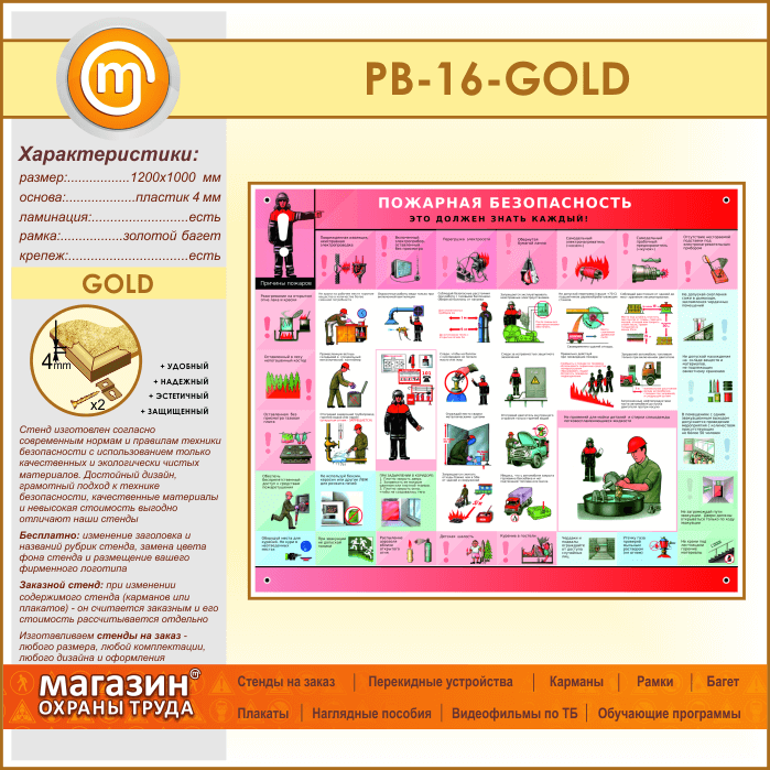 Стенд «Пожарная безопасность. Это должен знать каждый» (PB-16-GOLD)