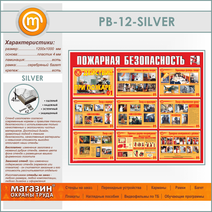 Стенд «Пожарная безопасность. Действия при пожаре» (PB-12-SILVER)
