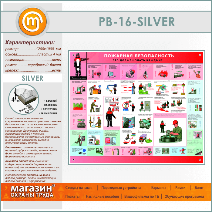 Стенд «Пожарная безопасность. Это должен знать каждый» (PB-16-SILVER)