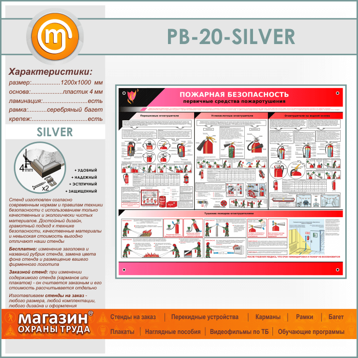 Стенд «Пожарная безопасность. Первичные средства пожаротушения» (PB-20-SILVER)