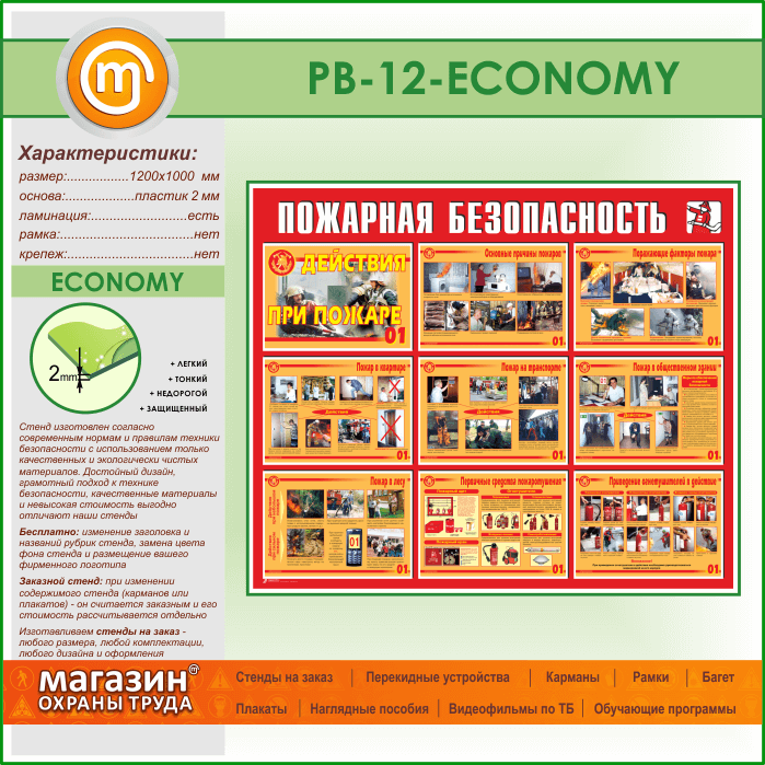 Стенд «Пожарная безопасность. Действия при пожаре» (PB-12-ECONOMY)